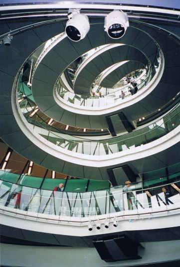 ロンドン市庁舎(建築家ノーマン・フォスター)普段見れない建物内部を公開するオープンハウス。皆さんリストを片手に建築巡り。