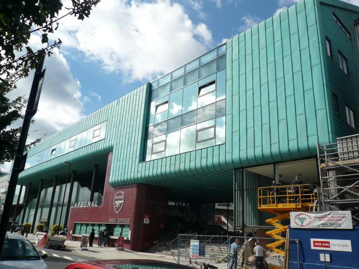 ピッチ部分はプライベート公園。それを囲むスタンド席はそれぞれフラットになっていました。アーセナルサポーターならぜひ住みたい場所ですよね。 |