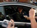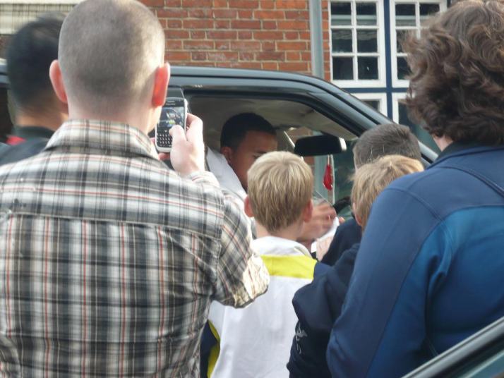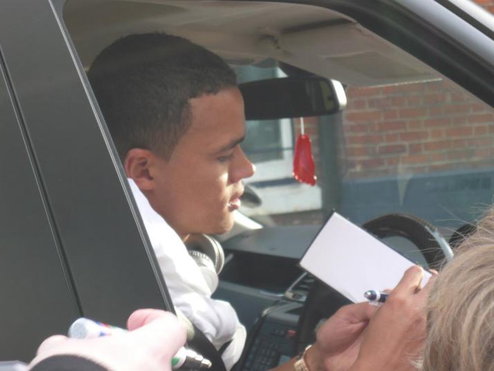 選手の帰宅風景に遭遇。ジーナスは自ら車を止めて、待っている人達に「おいで」と手招き。