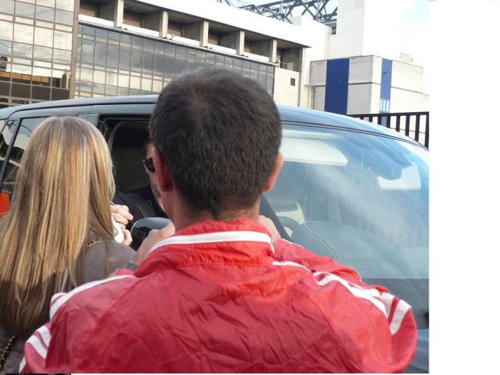 クラウチは急いでいたのか、ゲートを出てくる時点で、「バイバーイ」のジェスチャーをして走り去った為シャッターをきる時間がなかったです。走り去るクラウチをサポーター達は茶化したりしながら応援歌で見送っていました。 |