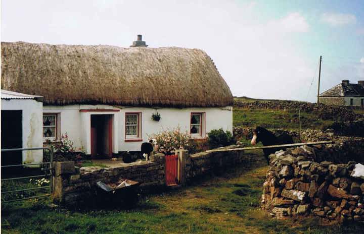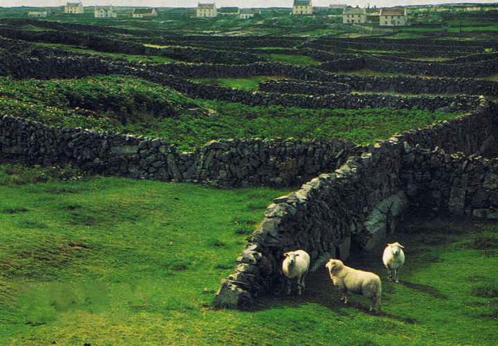 フェリーで約2時間半、ゴールウェイ湾の河口に浮かぶアラン島最大のイニシュモア島に到着。有名なアランセーターは漁師達の防寒具。流れついた死体が誰だか分かるよう家々で編み方を変えてたそうです。 |