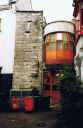 どんよりとした天気に石造りの建物。赤い窓枠が効いてます。 |