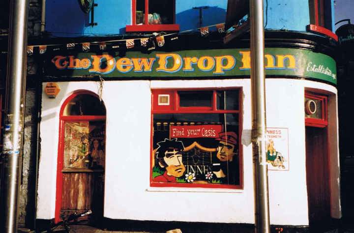 | パブのステンドグラスに「Find Your Oasis」と題して、オアシスのギャラガー兄弟が描かれていました。 |
