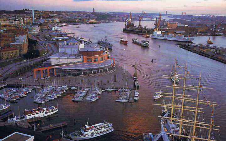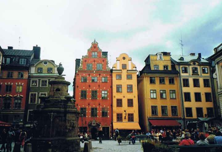 フィンランドのヘルシンキからフェリーで16時間、北欧のヴェネツィアに到着。緑色の屋根(銅板でリョクショウの色)が多く、レンガ色の壁によく映えて綺麗でした。 |