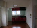 キッチンスペースを間仕切りして、独立空間に仕上げた。壁にはTVを設置。 |
