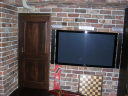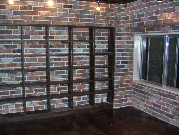 壁には、100年前のイギリスの古レンガを貼って本箱を設置。本もインテリアの一部だ。床は床暖房(電気式)の上に、無垢材のフローリングを敷いた。全体的にクラシカルな雰囲気に。 |