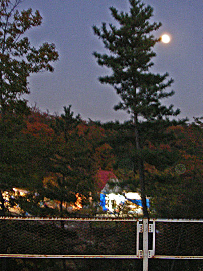 現場の帰り道、とても綺麗な満月。今となっては良い思い出だが、「まむし注意」と書かれた道を出口まで帰って行くのは怖かったです。 |
