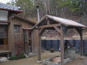 この部分は、映画を出来る限り忠実に再現。サツキが入っていた焚口も造ってあり、子供が潜るぐらいの深さがある。木で出来た無双窓が見えるが、ここから竹の筒をさし、ポンプの口につなげて水を供給。角度には苦労しました。 |