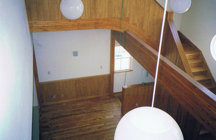デザイン的には腰板、梁、手すりをクリアー仕上げ。